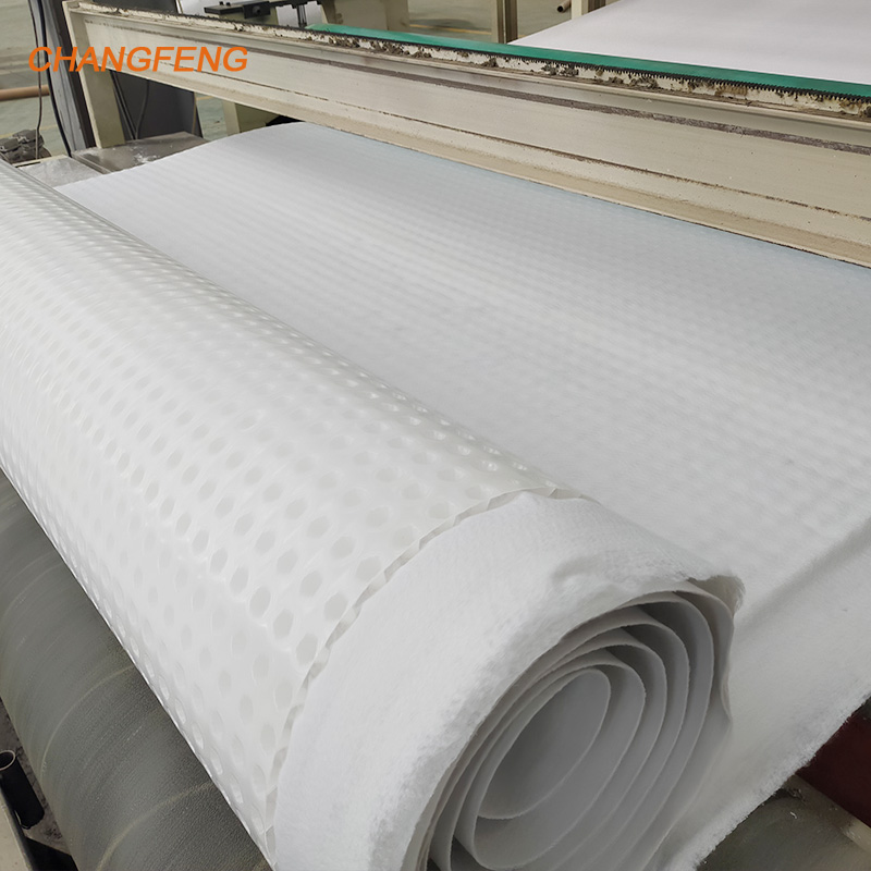The typical components of a composite drainage board may include:1.Geotextile Fabric: This is a permeable textile material that allows water to pass through while preventing soil or other particles from clogging the drainage system. The geotextile fabric acts as a filter to ensure proper water flow. 2.Drainage Core: This layer is usually made of a plastic material, such as high-density polyethylene (HDPE), and features a network of dimples or studs to create channels for water to flow through. The drainage core provides structural support and helps to distribute the weight of the overlying materials. 3.Protection Layer: Sometimes, a protective layer such as a non-woven geotextile fabric or a geocomposite is added on top of the drainage core to shield it from damage during installation and to provide additional filtration. Composite drainage boards offer several advantages, including improved drainage efficiency, reduced soil erosion, enhanced stability of structures, and better management of water runoff. They are often used in conjunction with other drainage systems, such as perforated pipes, to create comprehensive water management solutions for various construction projects.