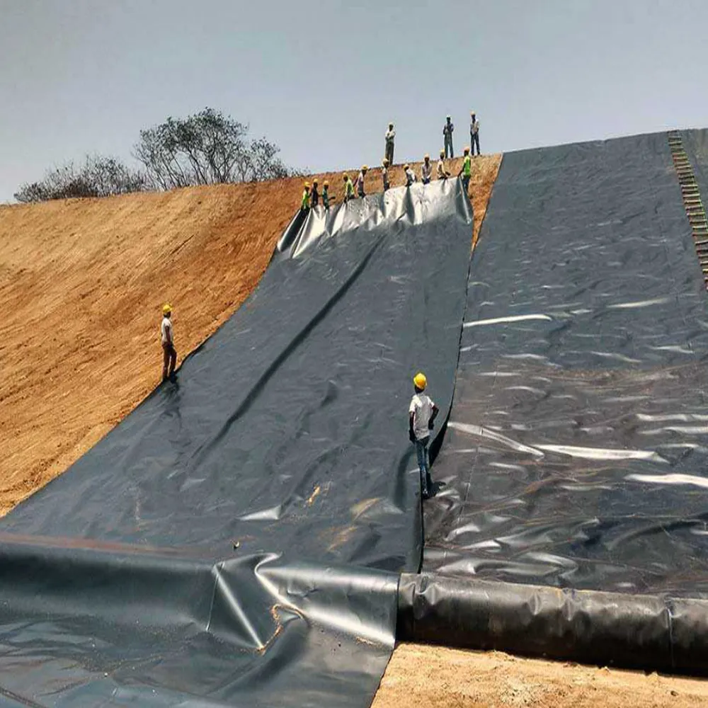 HDPE Geomembrane и вкладыш пруда производится из полиэтиленовой смолы чрезмерной плотности путем процесса выдувания пленки, добавляя сажу, антиоксидант, компонент против старения и сопротивления ультрафиолетовому излучению. Теперь это наиболее широко используемый товар для надежного сдерживания отходов (например, вкладыши для полигонов), горнодобывающей промышленности и сдерживания воды.